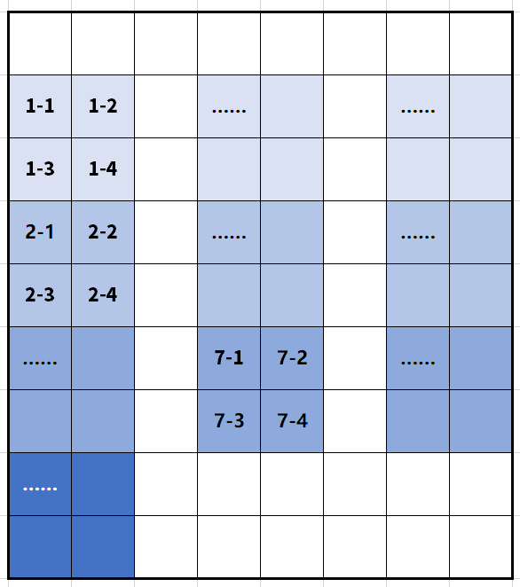 当时全市教育界都流行搞分组,大概就是反转课堂那一类的,鼓励学生和学生之间互相学习。于是我们的班主任海萍姐姐给我们按照班里排名排了个座位,班里恰好四十人,分十组每组四人,组内编号 1-4。规则很明确:一组 1 号是全班第 1 名,二组 1 号是第 2 名,依此类推至十组 1 号为第 10 名;一组 2 号是第 11 名,二组 2 号是第 12 名,直至十组 2 号为第 20 名;3 号对应 21-30 名,4 号对应 31-40 名。